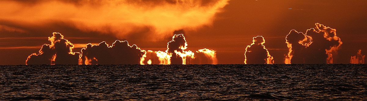 Gewittercumuli am Horizont über der Karibik - noch nicht ganz in